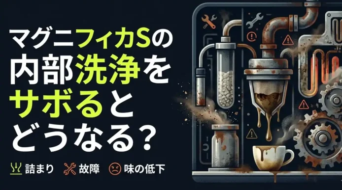 デロンギ マグニフィカSの内部洗浄は、最初こそ「パーツの外し方がわからない」「どこを洗えばいいの?」と戸惑うこともあるかもしれません。