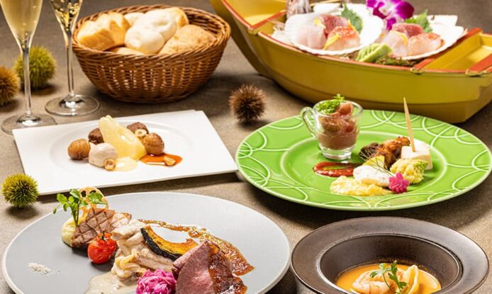 夕食は、地元・伊豆の魚介や旬の食材を使った和洋折衷の創作料理。