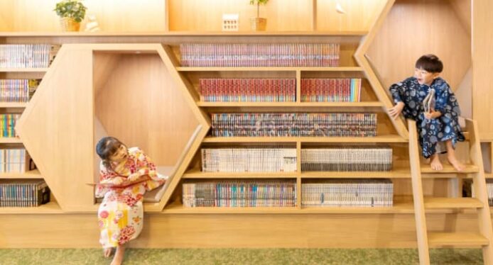 棚と一体になったおこもり感のある空間で、豊富な漫画を好きなだけ読みふけることができます。