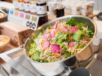 メニューには、オーガニック野菜を使った新鮮なサラダや、乳酸菌を配合したオリジナルドレッシングなど、健康志向の方に嬉しい工夫がたっぷり。